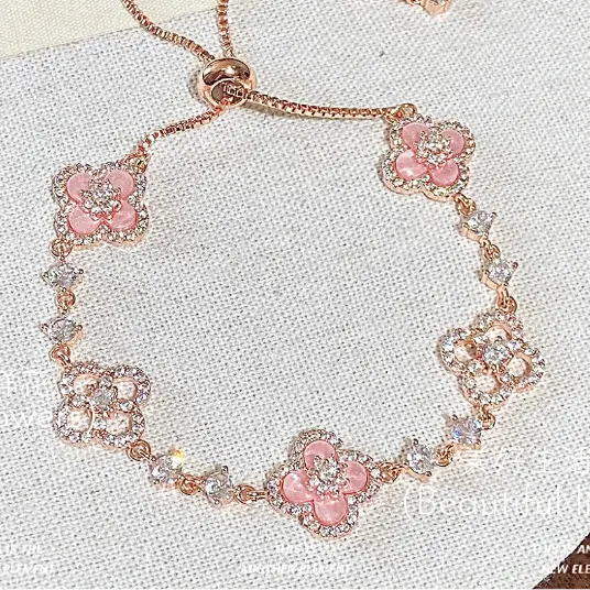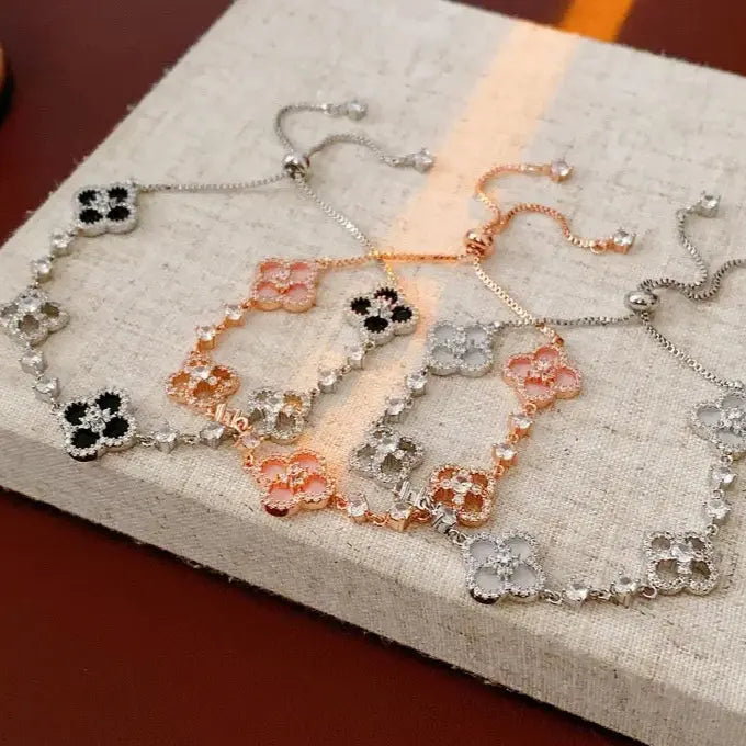 ✨ Add a sparkle of elegance to your wrist with this Four-Leaf Clover Bracelet, featuring delicate micro-zirconia inlays and a symbolic clover design.